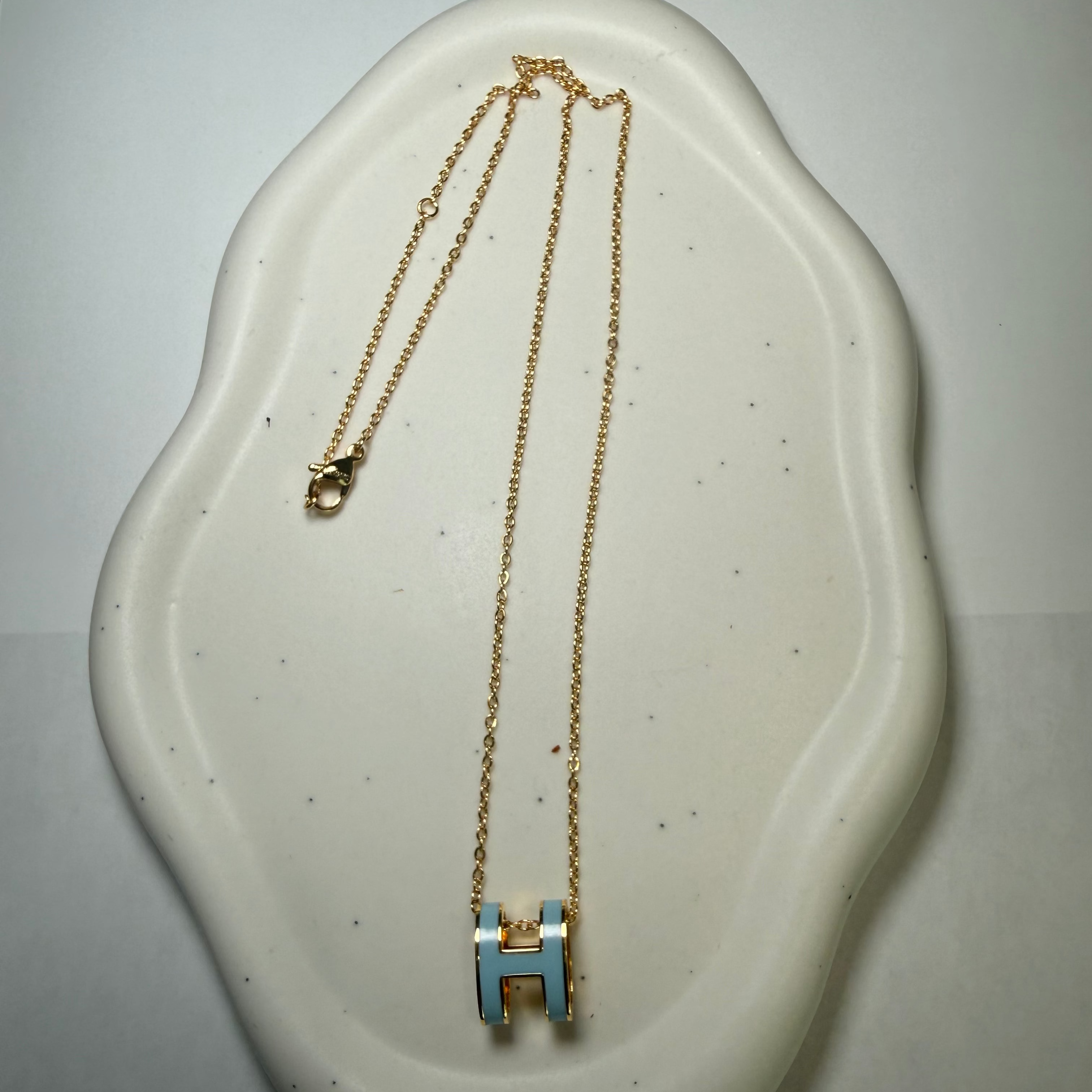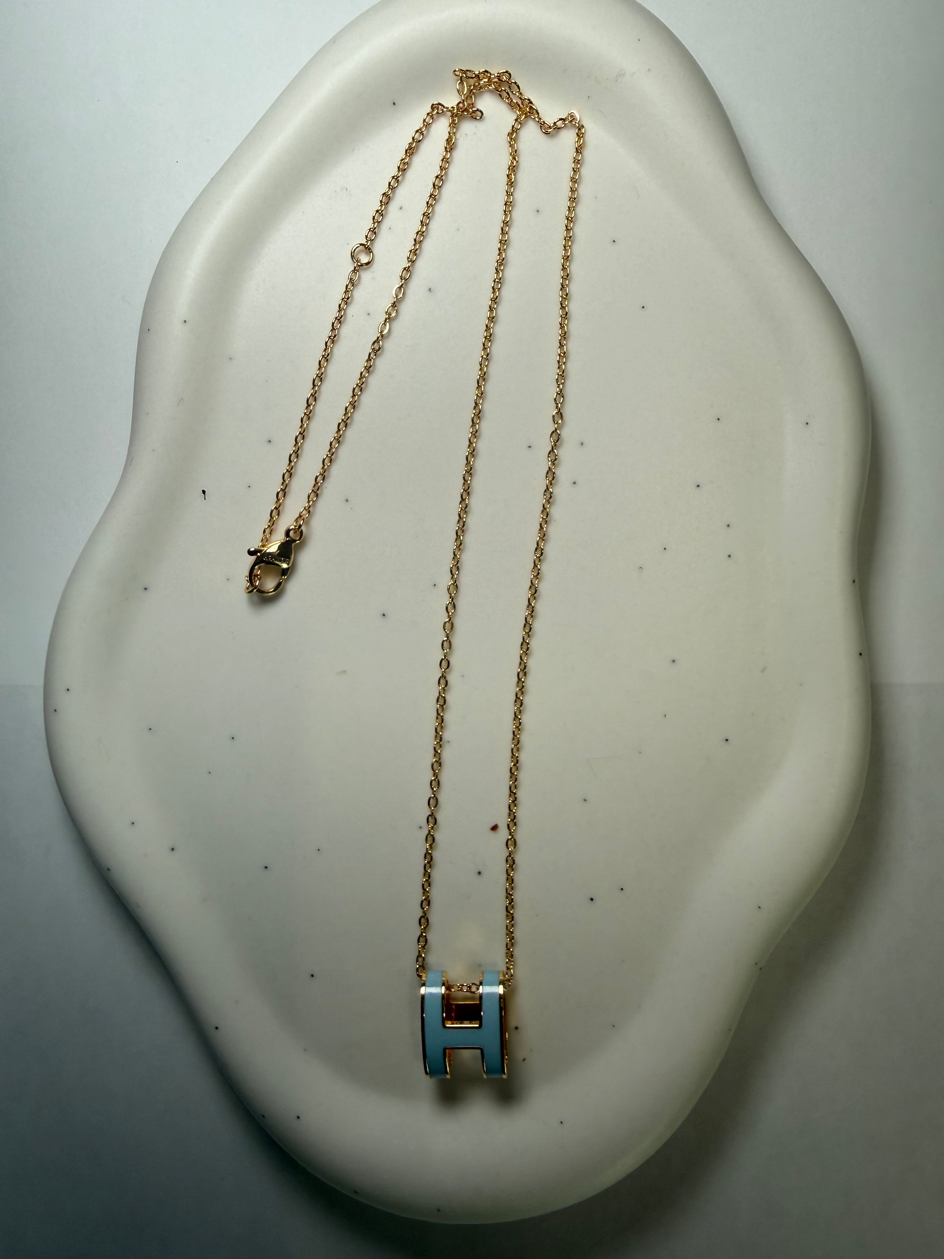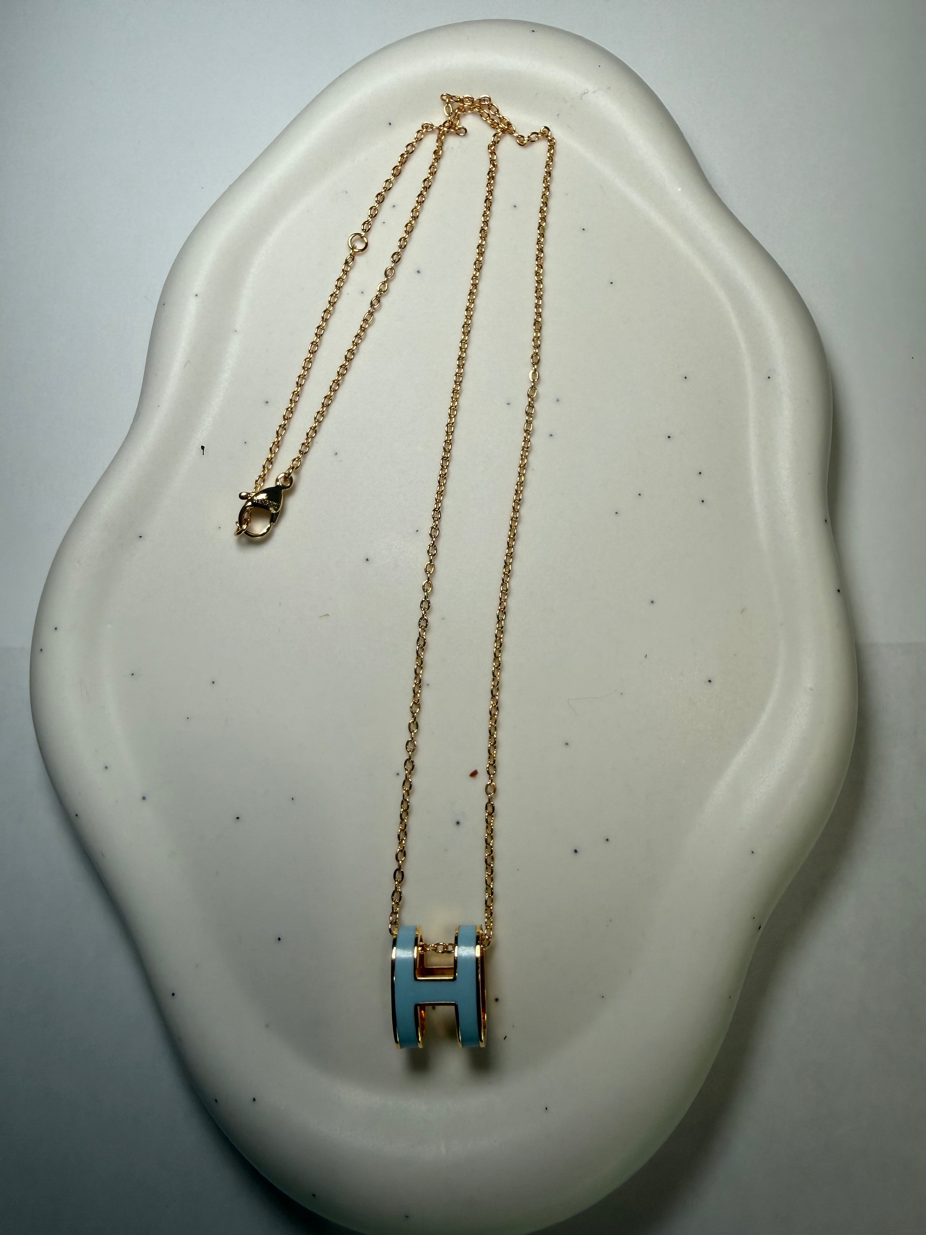 Élégance Royale - H Necklacea refined creation that embodies Parisian-inspired elegance. The Élégance Royale - H Necklace features a polished “H” pendant suspended on a delicate chain, plated in 14k gold for a luminous finish